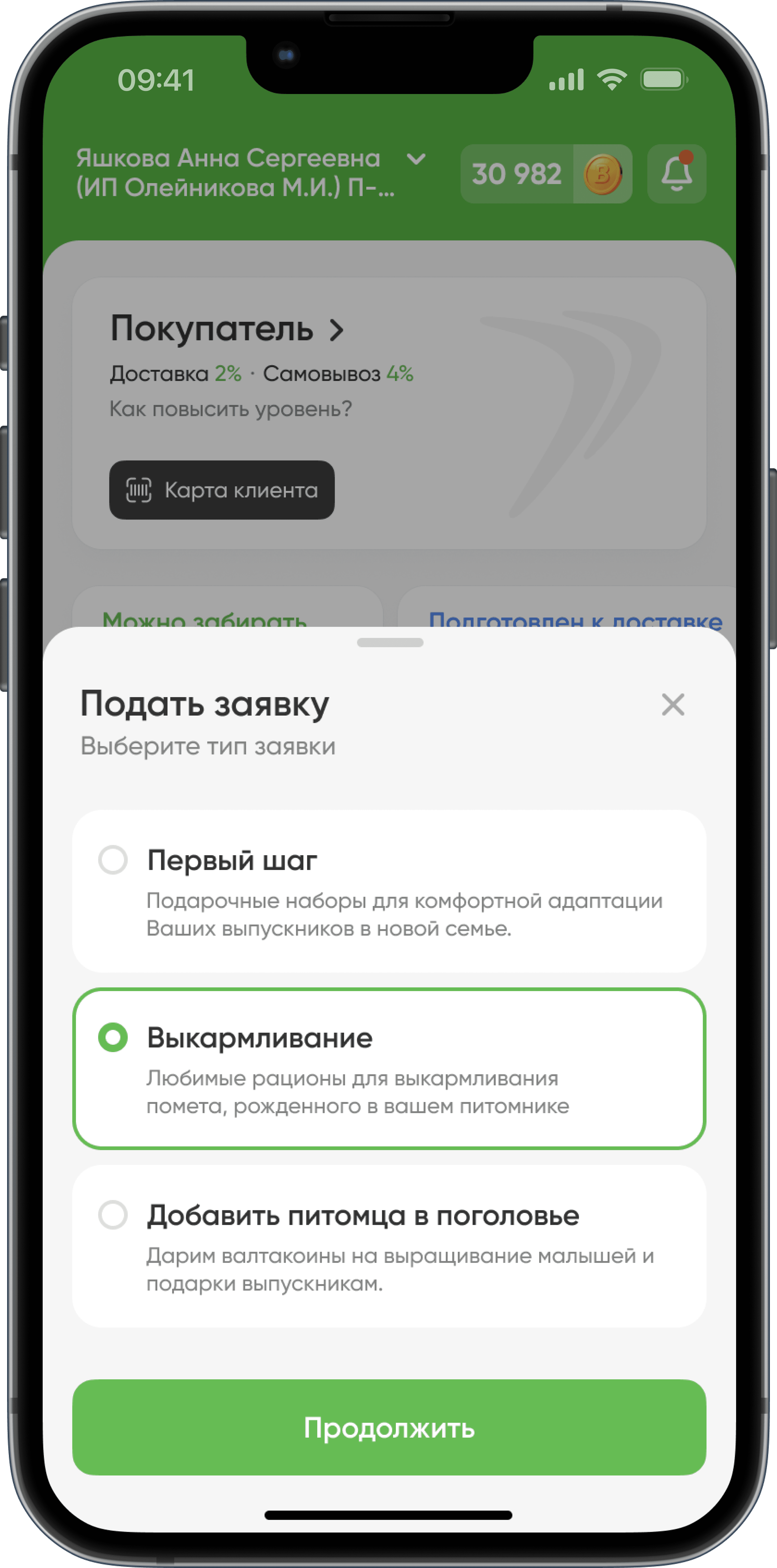 Необходимо было переработать главный экран с учётом специфики работы по договорам и сделать фокус на заводчиков, у которых есть уровни клиентов и программы по выкармливанию помёта. Эти программы используются постоянно, но текущий интерфейс усложнял их контроль. Уровни клиентов «прятались» в PDF файлах, а отслеживание заказов в интерфейсе отсутствовало, хотя статусы можно было получать из 1С