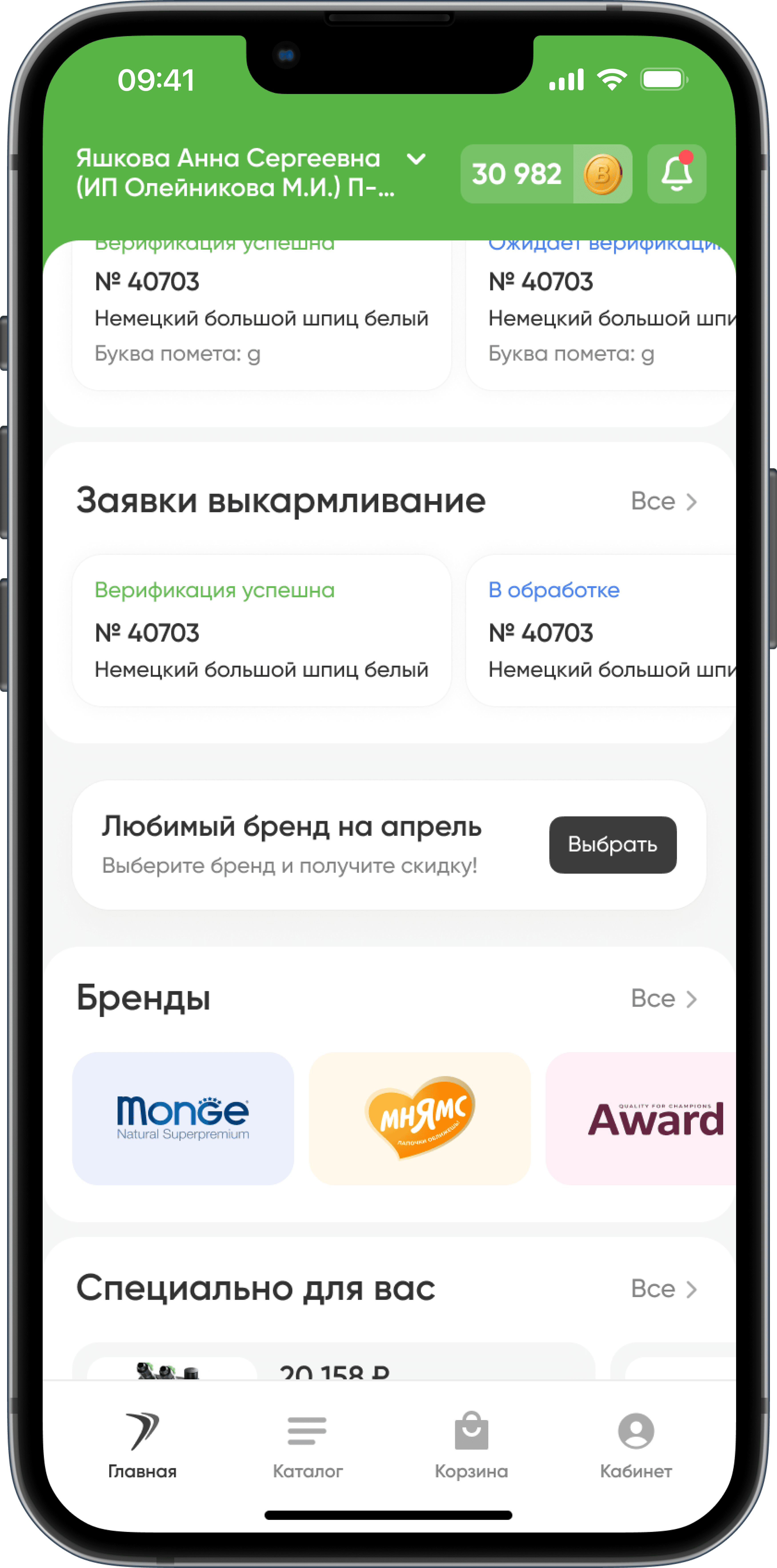 Я добавил бренды на главную страницу, предложил и согласовал дополнение системы лояльности, добавив «любимый бренд месяца». Совершая покупки на определенную сумму товаров одного бренда, заводчик получает повышенный кешбэк Валтакоинами