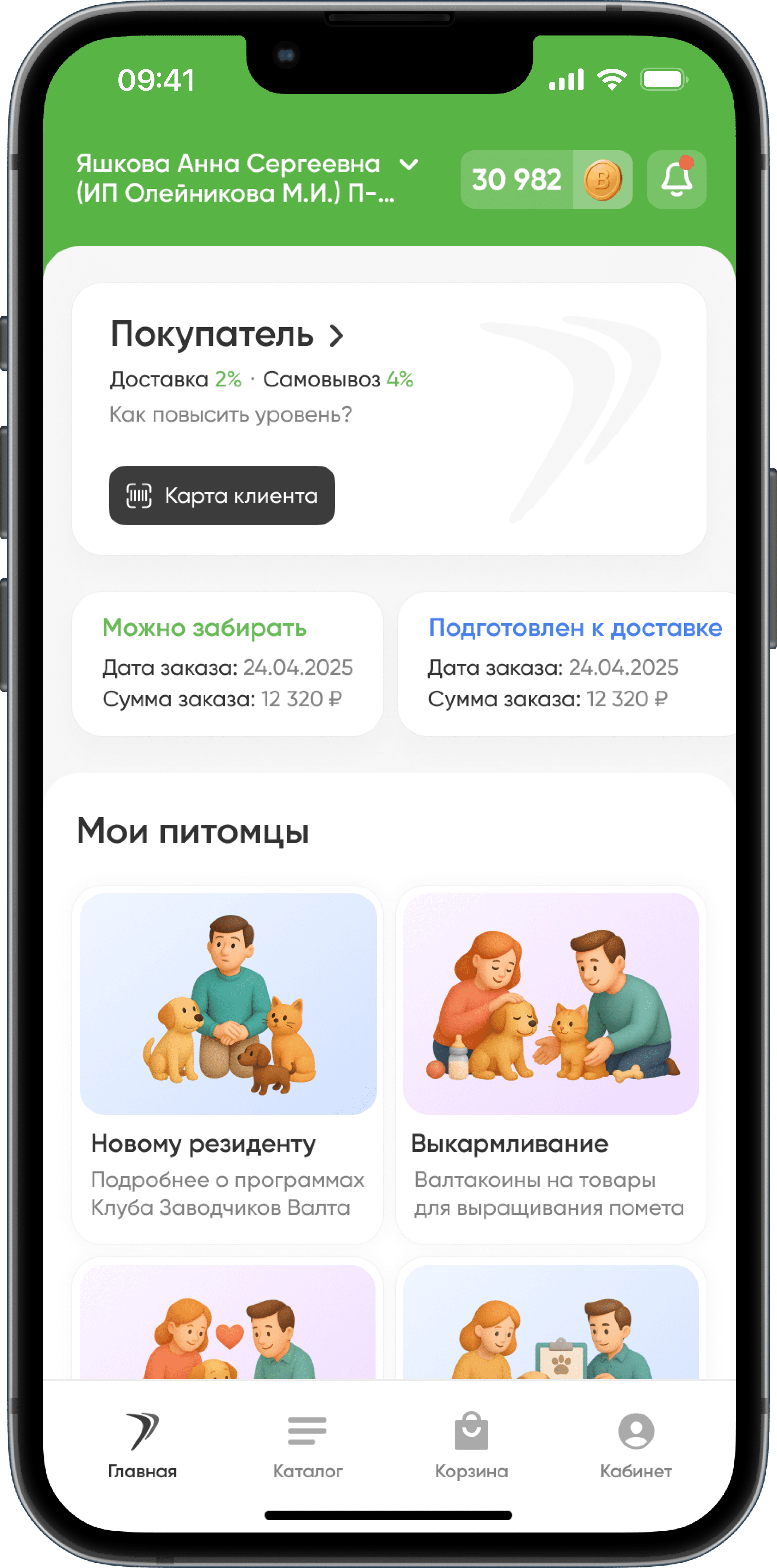 Главный экран стал модульным конструктором: заводчики получили максимум возможностей, а набор блоков автоматически подстраивается под условия конкретного договора. При этом неиспользуемые модули просто отключаются, сохраняя целостность и единый визуальный стиль интерфейса.