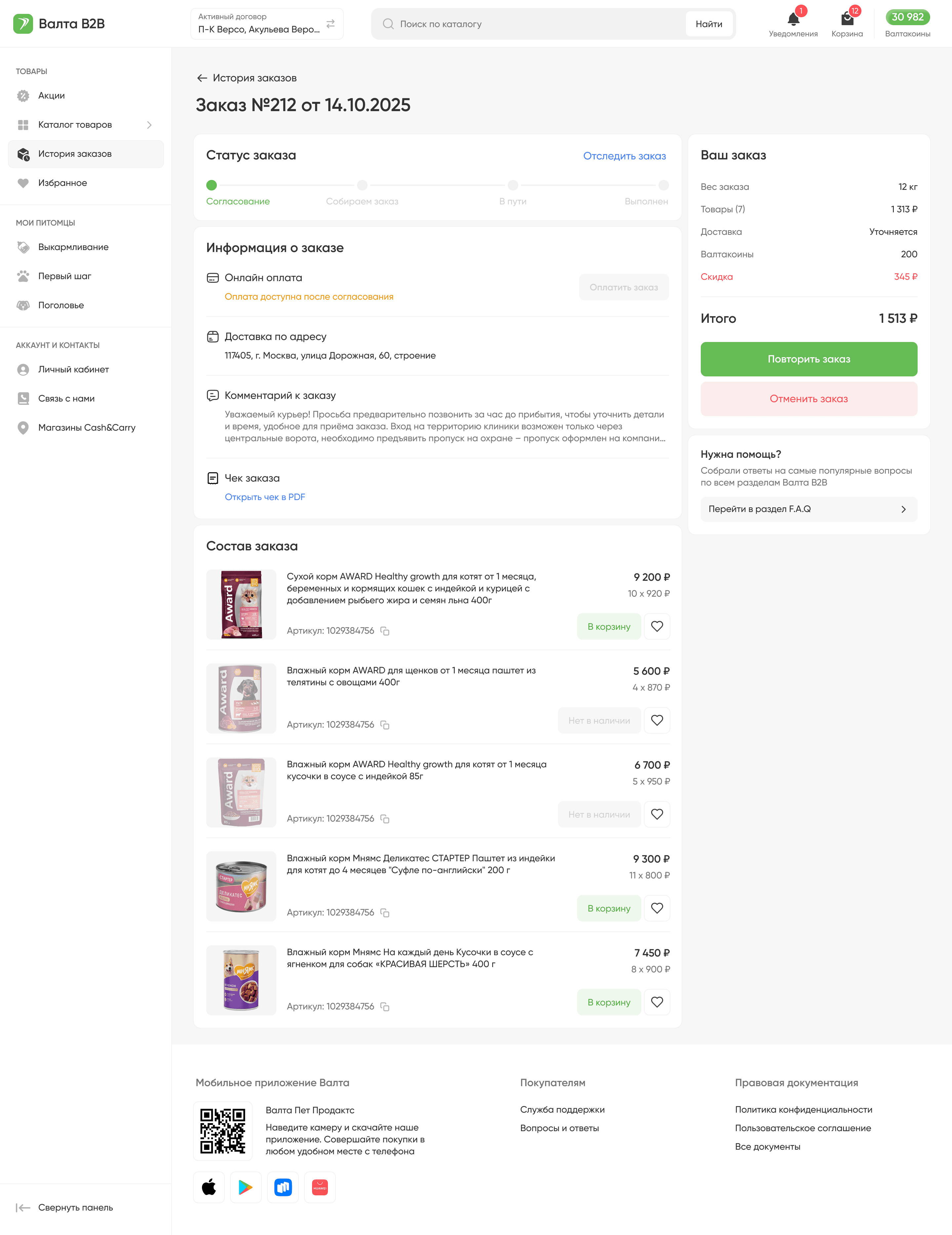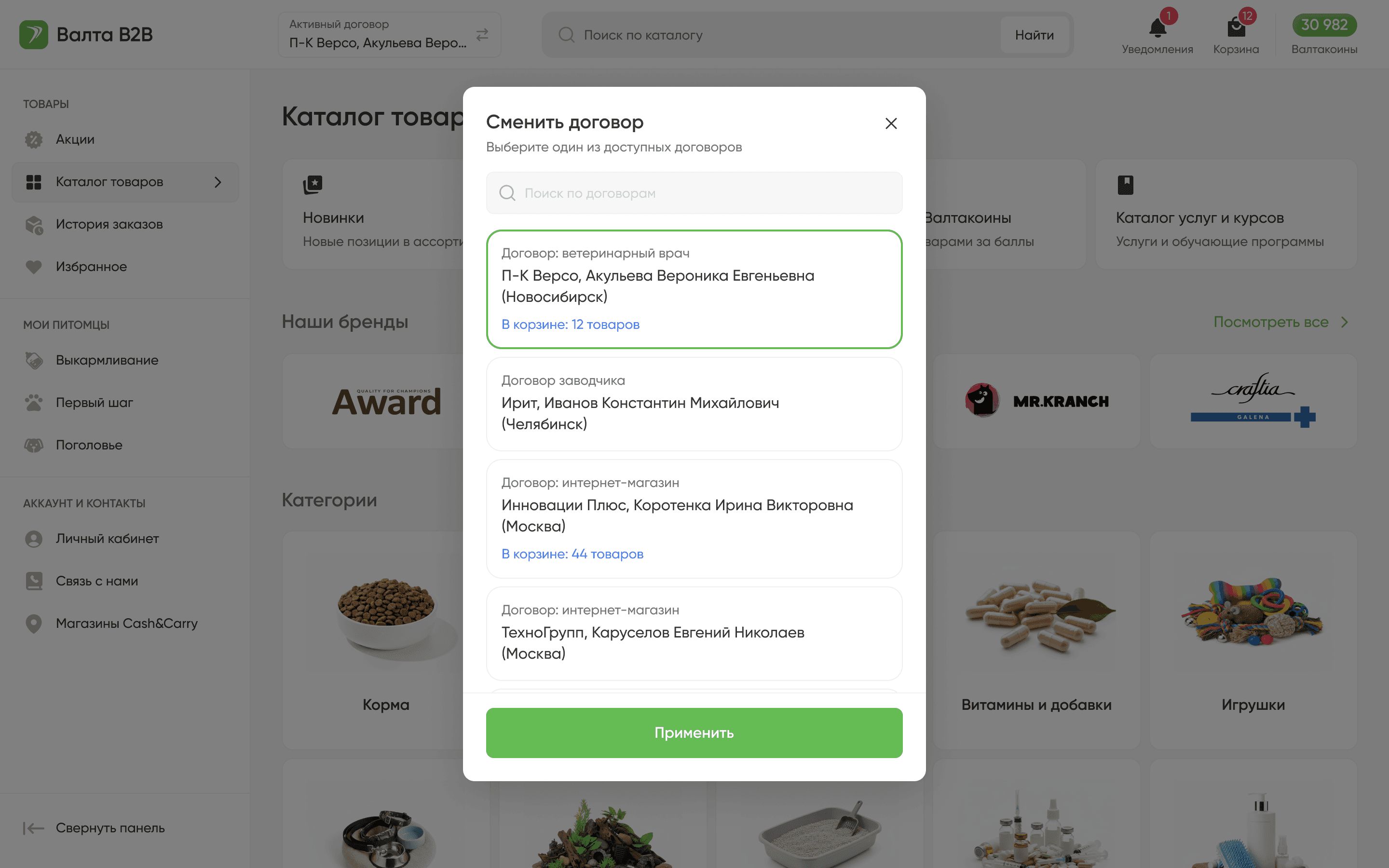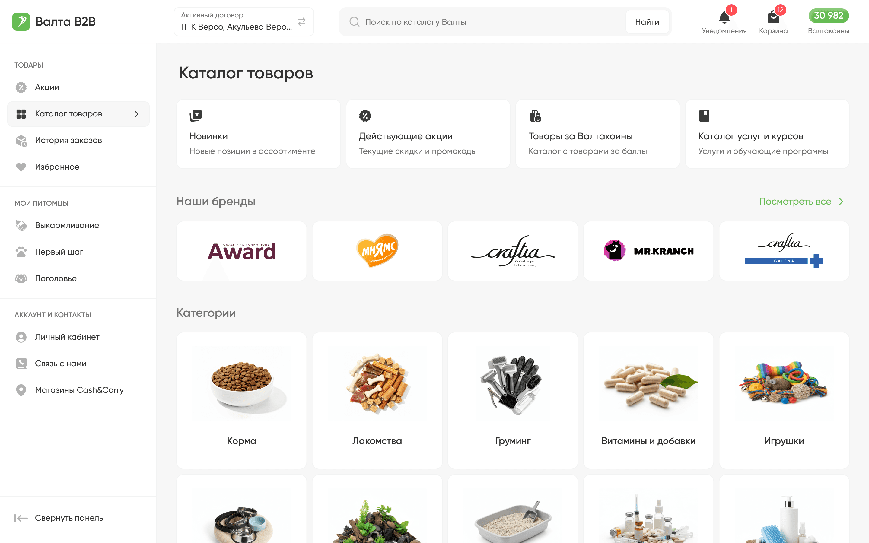 Простую навигацию: сейчас пользователям сложно одновременно управлять программами и закупать товары, хотя это два основных сценария. Каталог спрятан в хедер, программы лояльности — глубоко в личном кабинете, а переключение между несколькими договорами остаётся неудобным для тех, у кого их много