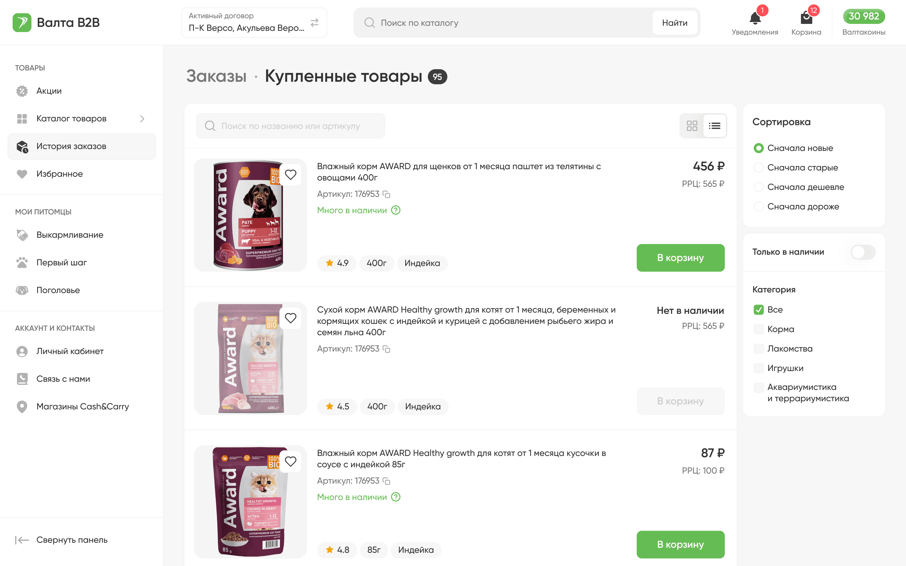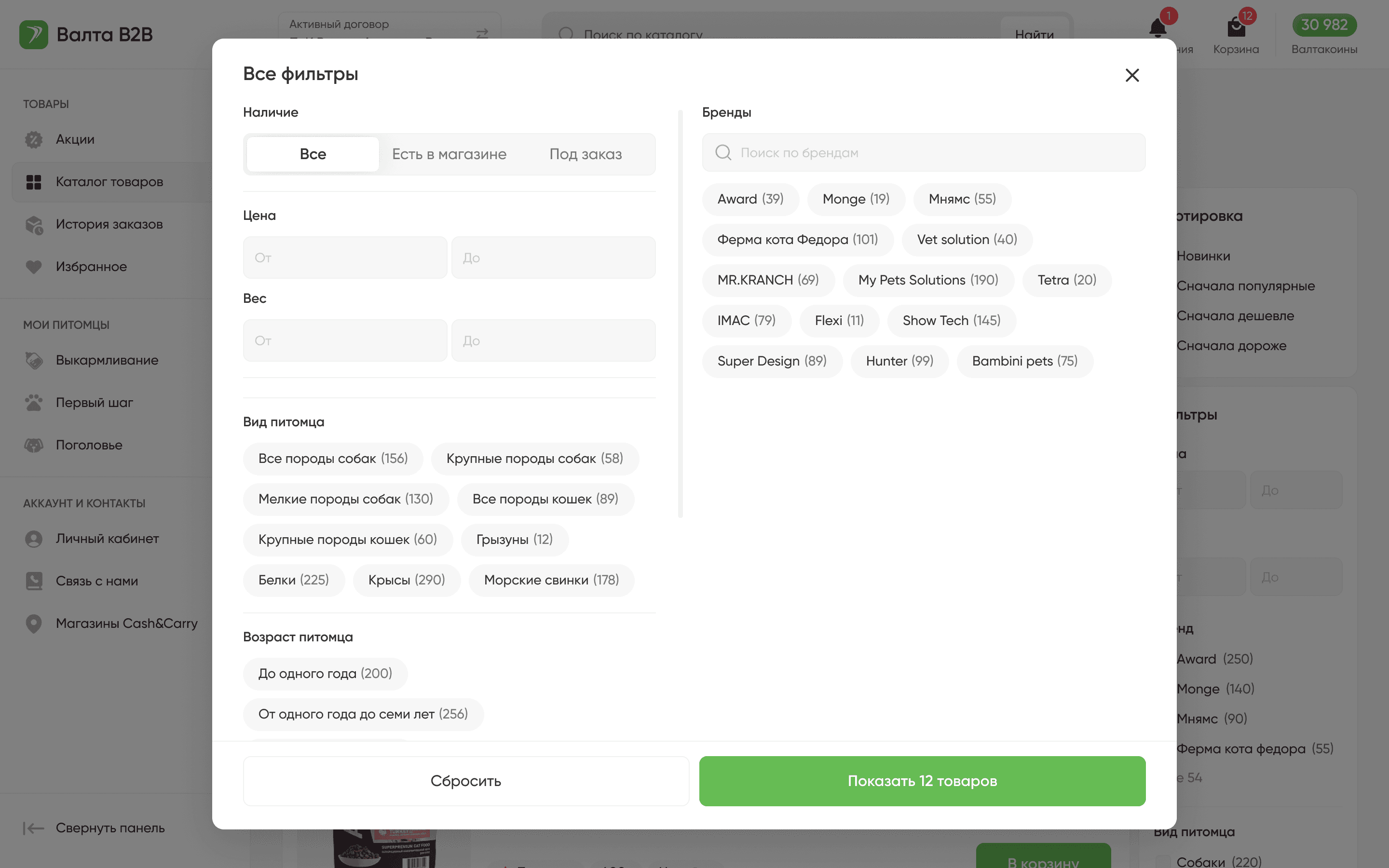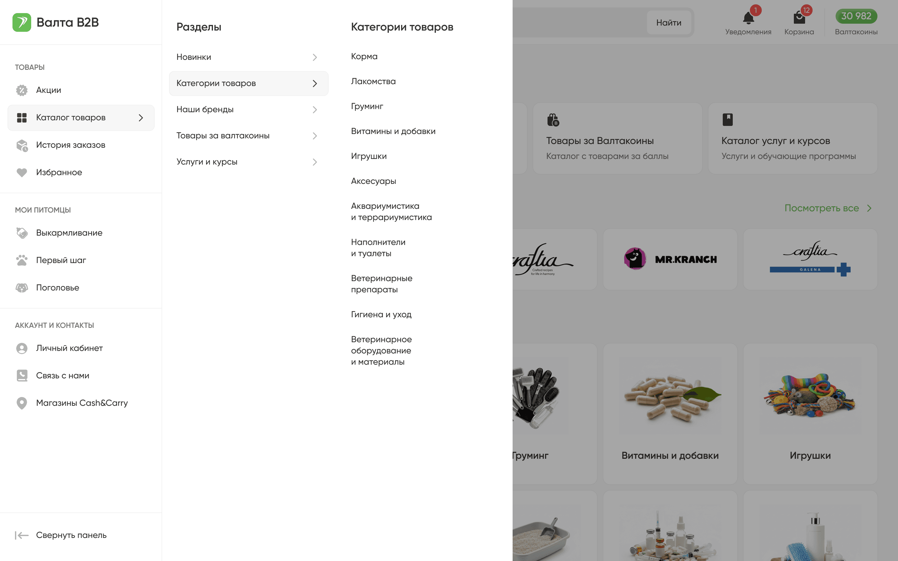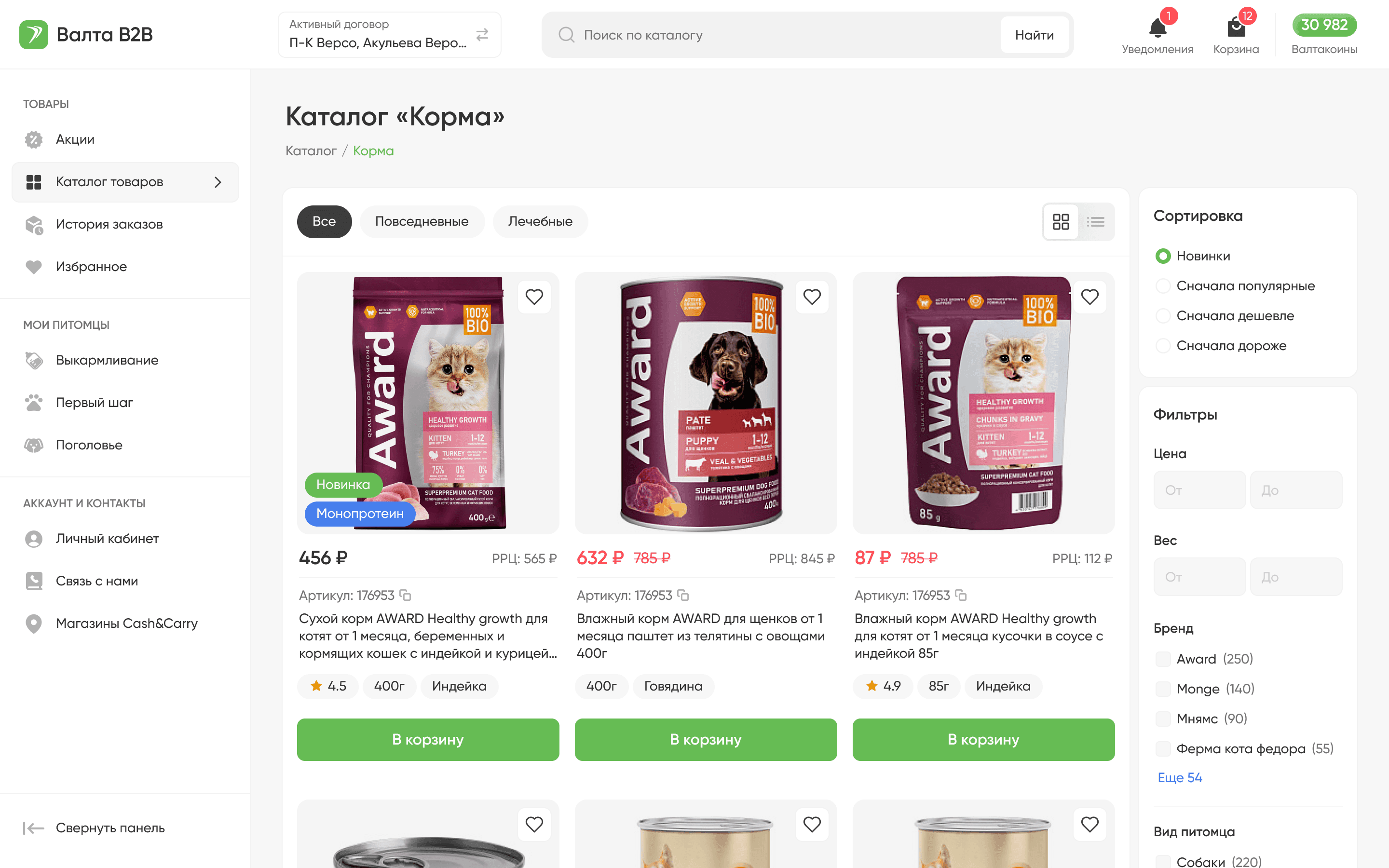 Пользователям не хватало более понятной структуры каталога: заводчики и магазины хотели быстро находить новинки и товары с оплатой баллами, но сейчас это возможно только «глазами» по тегу внутри общего списка каталога