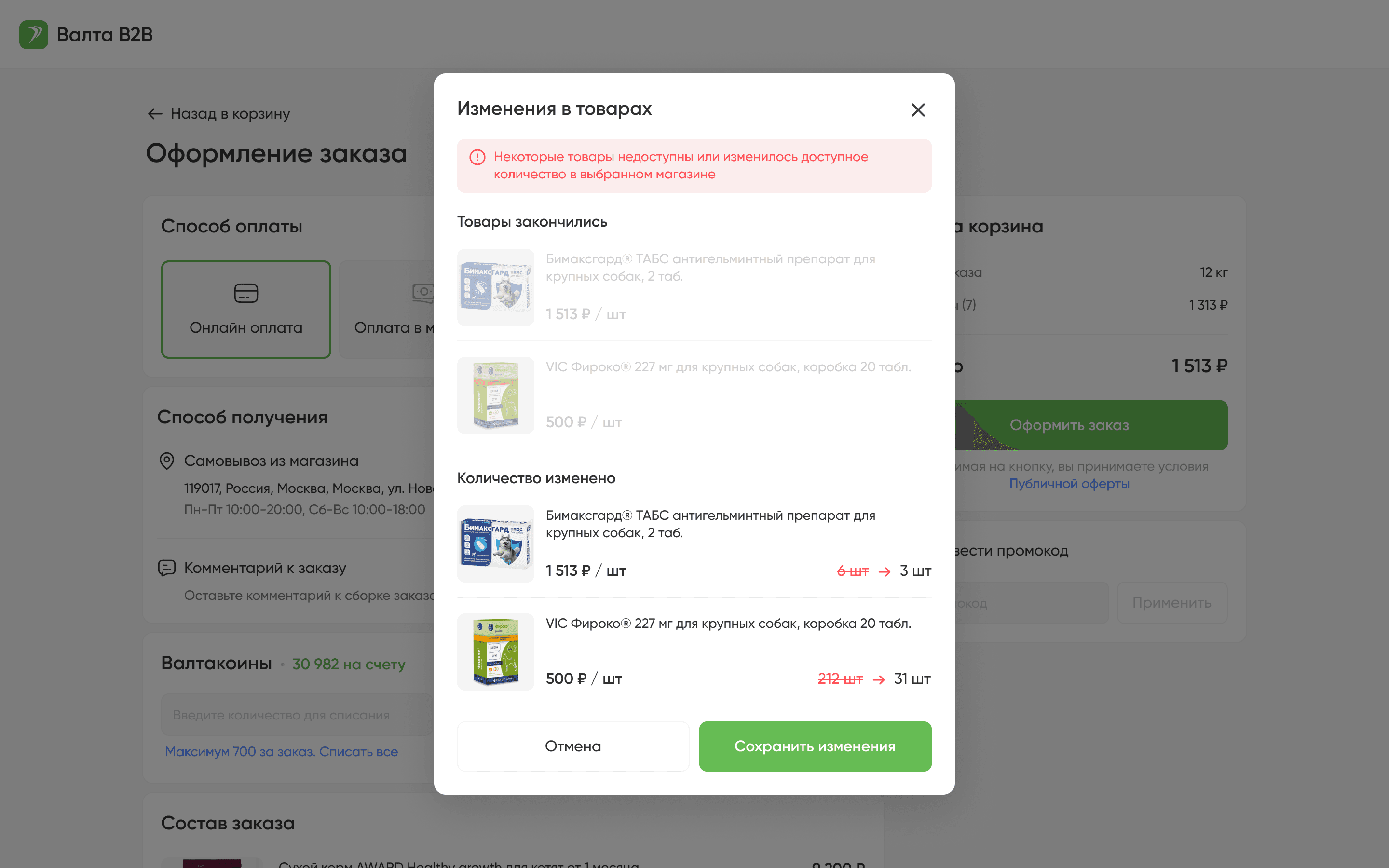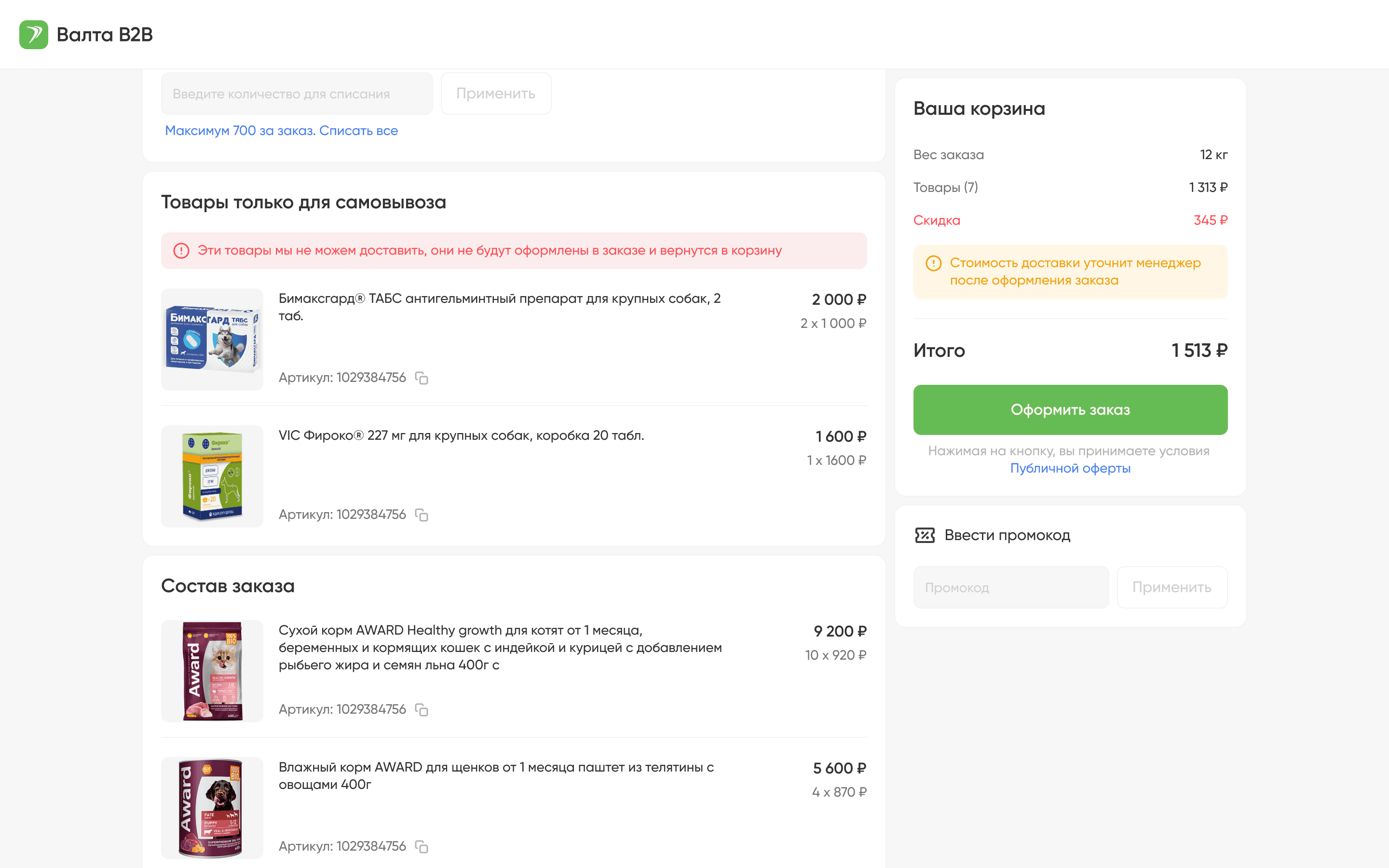 – Для физлиц продолжился сценарий с товарами на доставку и «только самовывоз»: при смене способа получения с самовывоза на доставку показываем предупреждение, что часть товаров недоступна для доставки и вернётся в корзину